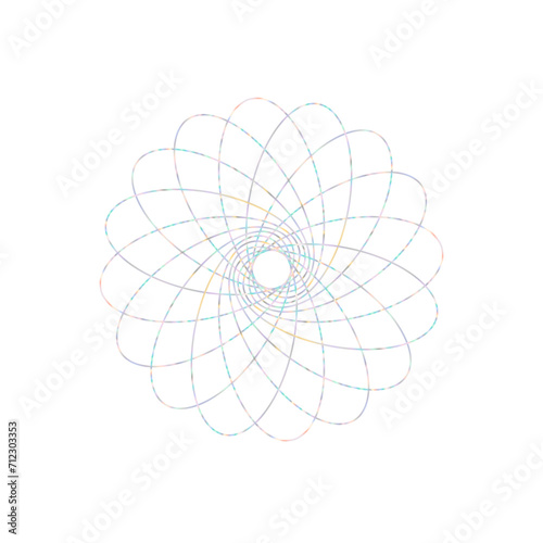 An abstract cut out transparent iridescent oval gradient star shape futuristic pattern design element.