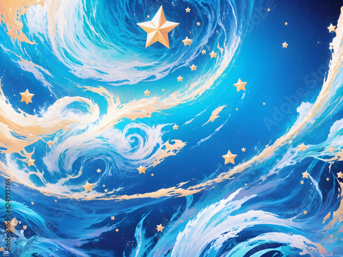 An abstract expressionistic composition featuring vibrant swirl and wave shapes.