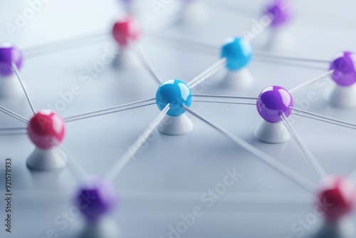 An abstract graph with connected nodes forms a complex 3D network, showcasing color-coded data points that flow along a gradient axis.