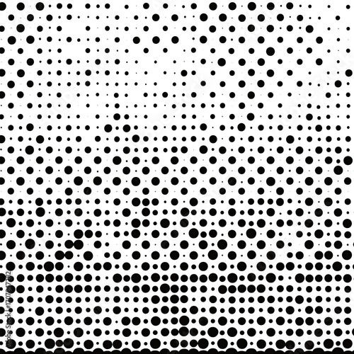 An abstract halftone pattern featuring varying sized black circles on a white background, creating a gradient effect from sparse to dense