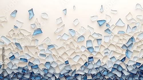 An abstract mosaic pattern in blue and white glass brings sophistication with a luminous touch.