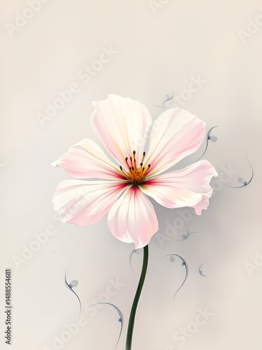 An abstract painting of a single flower. Drawing flower light strokes white glare. A flower glares with white lifestyle light.