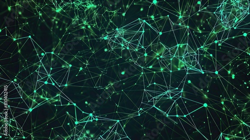 An abstract pattern of neon green and turquoise connections resembling a digital jungle over a dark canvas specifically arranged to leave ample room for text in the top right corner