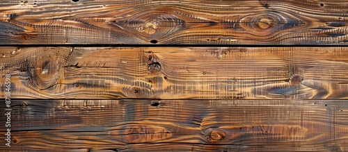 An aged, scratched brown wooden board with knots provides a rustic texture for backgrounds or designs, perfect for a copy space image.