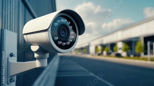 An AI-powered security surveillance system monitoring a high-tech industrial complex