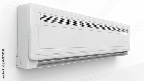 an air conditioner, essential home appliance, wall-mounted unit, white, isolated on white background