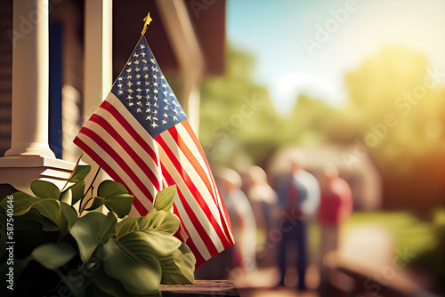 an american flag on a porch with people walking in the background and text that reads, what to do when you don't. Generative AI