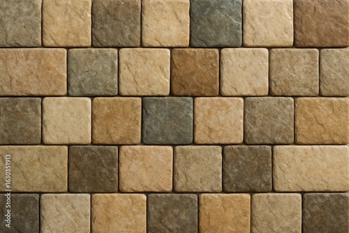 An array of earthy-toned stone tiles in a repeating pattern, evoking a rustic and natural aesthetic