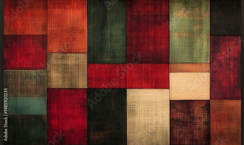 An earthy and muted abstract pattern of square and rectangular shapes arranged with a subtle textural aesthetic