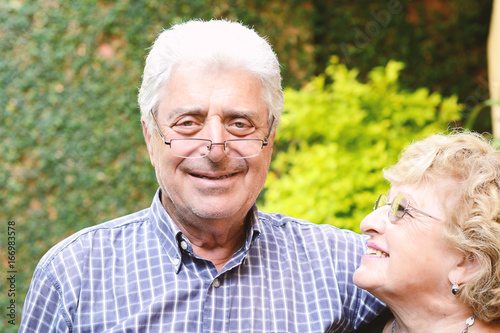 An elderly couple outdoors.