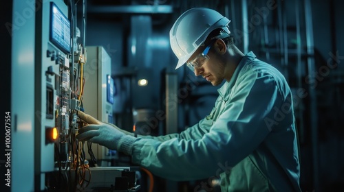 An electrician performing routine maintenance on industrial electrical equipment.