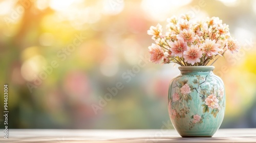 An elegant vase featuring hand-painted floral patterns, with each flower symbolizing a different season, detailed and ornate design, vibrant colors
