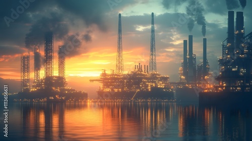 An energy market focused on nuclear-powered oil companies, with nuclear reactors and oil rigs in the background, showing rising investment opportunities