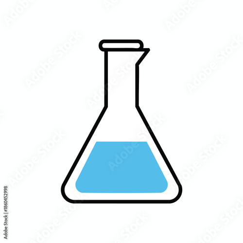 An Erlenmeyer flask icon with a black outline and a blue liquid inside