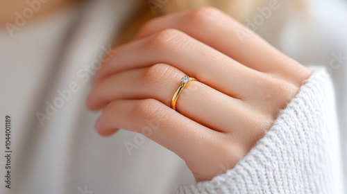 An image capturing a dainty hand adorned with an elegant gold ring, emphasizing its minimalistic design and sophisticated appeal, reflecting subtle personal style.