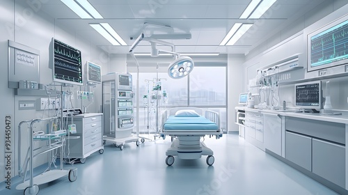An image of a modern hospital room equipped with advanced medical devices, including a ventilator, IV stand, and patient monitoring systems, highlighting the critical equipment used in patient care