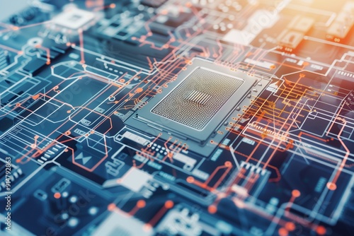 an image with a computer processor superimposed on detailed schematic diagrams
