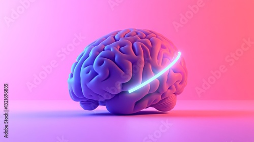 An imaginative illustration of a brain highlighted by a pink neon halo