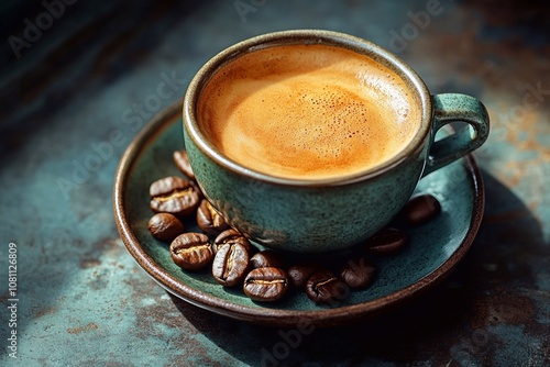 An incredible cup of fragrant latte with soft, delicate foam. The drink has a creamy texture and the foam looks perfectly smooth, creating a visually appealing look. The aroma of latte fills the space
