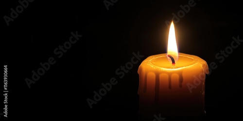 An isolated lit candle on a dark background, glowing with a warm, inviting light.