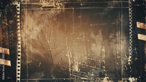 An old distressed photo with light leaks, grain, dust, and scratches with an overlay with vignette borders. Grungy analog 8k widescreen retro effect background.