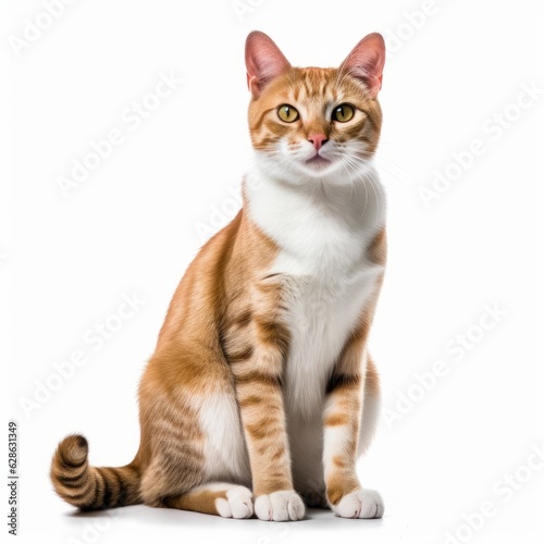 an orange and white cat sitting on a white background
