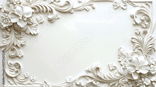 An ornate white floral relief design border for decoration purposes