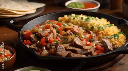An Unforgettable Dining Experience with Mouthwatering Steak Fajitas Accompanied by Mexican Rice and Refreshing Margarita