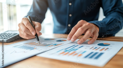 Analyzing financial data trends office business report professional environment close-up view data insights