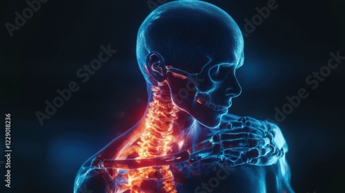 Anatomy illustration of neck and upper back pain.