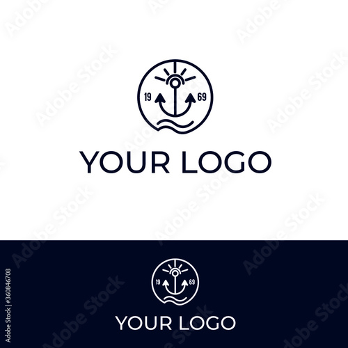 anchor sea sun logo design minimal and modern logotype vector template