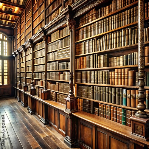 Ancient Books Adorn the Library Carefully Arranged with Classics and Rare Gems