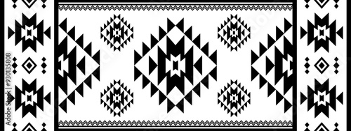Ancient echoes Aztec geometric seamless patterns southwest Navajo Native American tribal ethnic black and white for textile printing