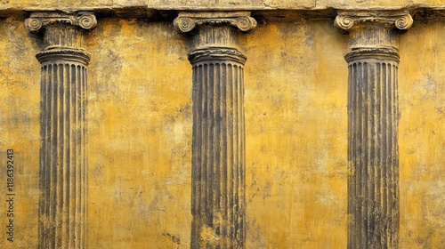 Ancient Greek Columns Against a Textured Yellow Background