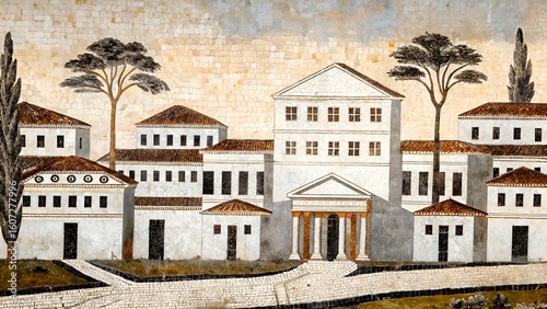 Ancient Roman City Villa Architecture Mosaic Artwork