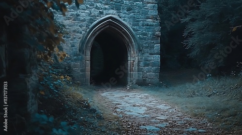 Ancient Stone Archway Leads To Dark Mysterious Passage