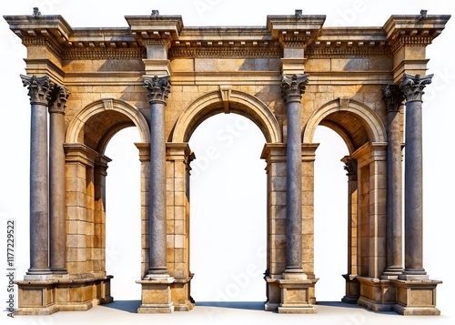 Ancient Stone Archway with Corinthian Columns: Panoramic Classical Architecture Stock Photo