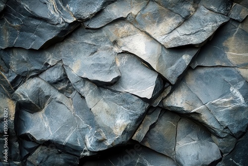 Ancient Volcanic Rock Formation with Dramatic Texture and Patterns Under Natural Sunlight in Mountain Landscape