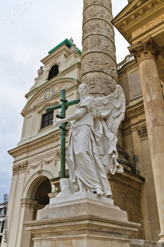 Angel statue with cross in front of Karlskirche (St. Charles's C
