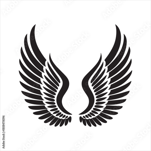 Angel Wings Icon – Black Feathered Wings Silhouette Vector