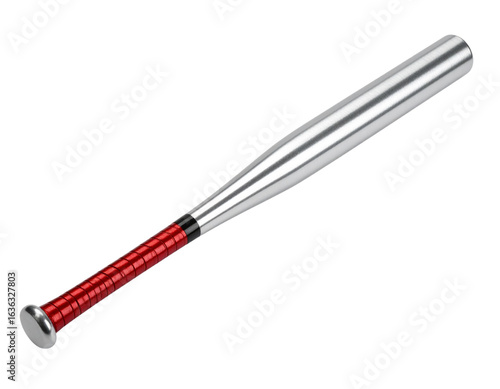 Angled Baseball Bat with Bold Red Handle, Shadowed Perspective, Transparent PNG