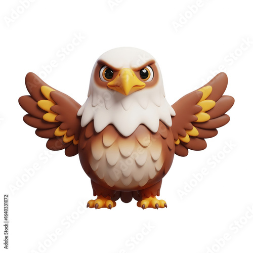 Angry Cartoon Eagle Character Spreading Wings On Transparent Background Ready To Attack