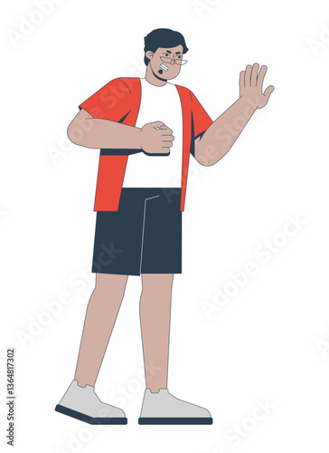 Angry middle eastern man fist clenched and raising hand 2D cartoon character. Heart attack symptom. Guy experiencing discomfort, pain flat vector person isolated on white. Spot illustration colorful