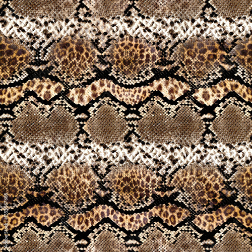 animal and abstract pattern work, snake and leopard skin mixed patterns, patterns suitable for fabric print and background.Abstract artistic background. modern Art feathers leopard pattern and repeat