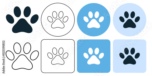 animal zoo footprint step, pet cat and dog paw vector pictogram sign icon symbol ui and ux design, glyphs and stroke line