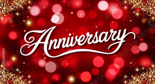 anniversary calligraphic lettering on red bokeh glitter festive sparkles background