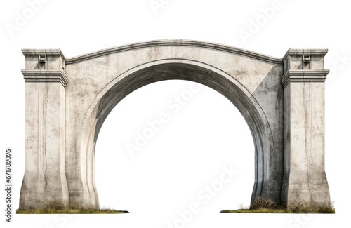 Antique concrete archway, a grand entryway, isolated on a transparent background. PNG, cutout, or clipping path.