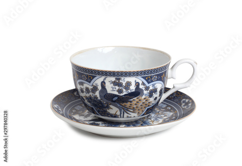 Antique porcelain tableware for tea on a white background