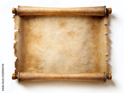 Antique Scroll, Aged Parchment Paper, Isolated Old Manuscript, Vintage Document, Rolled Paper Background