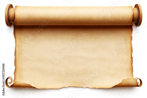 Antique scroll of parchment. Aged paper, unfurled, ready for message. Ancient communication